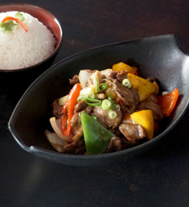 Stir fried Potatoes, mixed Bell Peppers, Spring Onions and Carrots in spicy Korean Sauce served with Rice. (Beef)