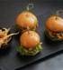 Spicy chicken or bean and lentil patties with Asian chutney and dressing, in warm, golden brioche buns.