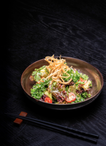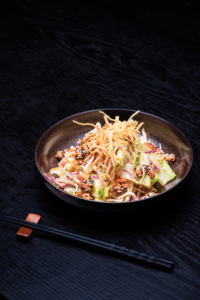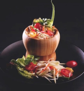 Shaved Green Papaya with Tomatoes, Fresh Chili, Carrots, Long Beans, Lime and Peanuts seasoned with Thai dressing